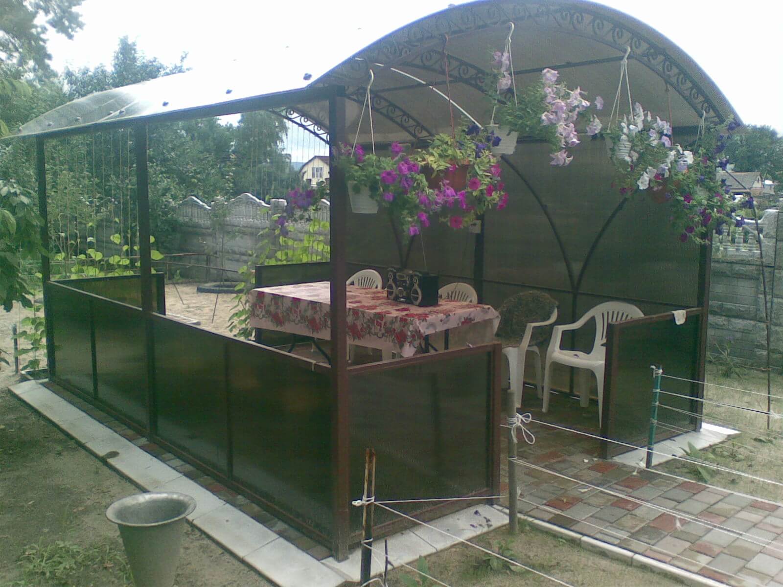 Поэтому компания "НавесСтрой" настоятельно рекомендует не экономить, а усилить каркас навеса для беседки более жёсткими профилями с увеличенной толщиной металла и количеством несущих ферм.
